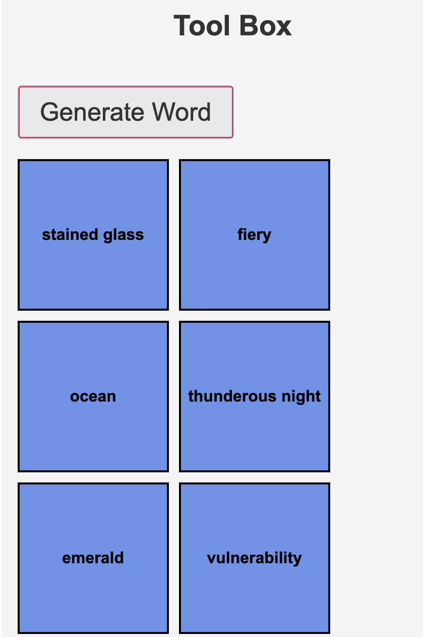 Click the "Generate Word" button to randomly produce your options. These words will appear in the sidebar under the following categories: